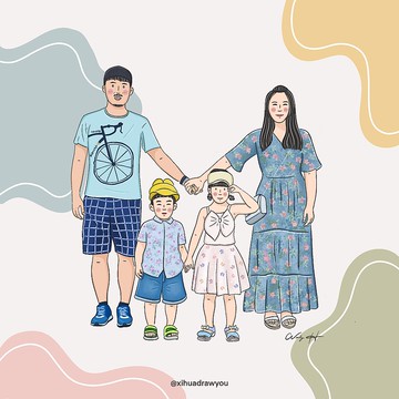 |電子檔資訊|·尺寸:正方形 (2048×2048 px 頭貼尺寸)長方形 (4x6 明信片尺寸)以上兩種都會有哦!若需其他尺寸請私訊或備註。·解析度:300dpi jpg檔·媒材 : 電繪·成品 : **電子檔email寄送**,若需實體明信片可備註,會給予QR code,可自行至7-11 ibon掃描印出(若有加購實體商品,即贈實體明信片乙張)|畫風 |可愛表情、線條、色塊、些許陰影,繪製依照設計師個人風格,非寫實主義喔!畫風以上列作品為主(更多作品可搜尋IG),請確認喜歡此畫風再下單,客製化商品訂單成立後恕無法取消哦!|繪製流程|1.下單前先詢問:請提供欲繪製人數或傳2-3張照片討論,若有特殊需求也歡迎提出,照片須清晰、光線充足,可接受不同照片繪製成同一張圖。(此步驟會先報價及引導下單)2.下單時,請在備註填寫特殊需求及留下收件人信箱。3.下單完成後,請將解析度清楚的原檔照片以電子郵件寄至設計師信箱,主旨請寫訂購人姓名,之後圖檔會回傳至您的信箱。4. 客製服務需完成付款後才開始繪製,工作天不含假日約14-21日,因設計師繪製為一人作業,為求作品完美,繪製時間內不接受催單,提早完成會提早交件哦!5.作品校稿:提供一次免費微調(髮型、髮色、服裝顏色、背景、文字修改⋯等,)無法更改圖片或大改,若需大幅度修改,視修改程度酌收費用。6.成品完成後會以電子檔案寄送至收件人信箱哦!(無紙本印製)|下單方式|若有下單問題請先私訊ex. 1人— 請選「人物全身」 數量1ex. 2人— 請選「人物全身」 數量2、ex. 3人加寵物2隻 — 請選「人物全身」 數量3、「寵物全身」數量2以此類推|其他|1.免費加文字/日期不限字數、語言,需要請備註2.複雜服飾或配件,如:複雜格紋、特殊圖騰、傳統服飾⋯等,因需花更多時間細細繪製,設計師會依照複雜度評斷是否需酌收費用,若有疑慮可先傳圖私訊討論。3.若無合照,可提供單張照片幫忙合成,並繪製在同一張圖,可私訊詢問。|加購 拍貼風格邊框 |https://www.pinkoi.com/product/cP5yZSYW?utm_campaign=koc&utm_content=xihuani750&utm_medium=ios_share&utm_source=Copy&utm_term=|注意事項|• 請下單前先與設計師討論再下單哦!• 一般下單提供素色或簡單背景(依設計師風格),可備註想要的顏色,其他由設計師創作,若想指定背景或複雜背景請私訊討論。| 法律權益 |• 圖檔不接受任何非經授權商業行為若有要商業用途請事先說明,計價方式另計。• 作品版權歸「喜花你」所有,不得翻印、轉售、印刷於喜帖或任何商業用途中,若有需要請來信討論。• 喜花你保有使用圖的權利包含廣告、發文⋯等。• 客製商品不適用7天鑑賞期,下單後無法因個人因素取消及退換貨。|更多作品|Instagram: xihuadrawyou