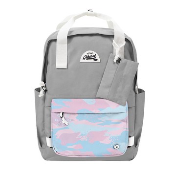 Grinstant混搭可拆組式13吋後背包 - 夢幻系列 (淺灰配迷彩粉)