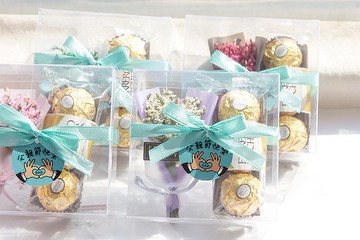 父親節禮物贈品 金莎巧克力3顆+迷你乾燥花束(透明方盒) 節日禮品