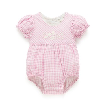 澳洲Purebaby有機棉嬰兒短袖包屁衣/新生兒 連身衣 粉紅格紋