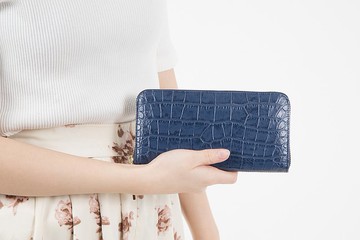 鱷魚仿古圓形拉鍊長款錢包/長款錢包