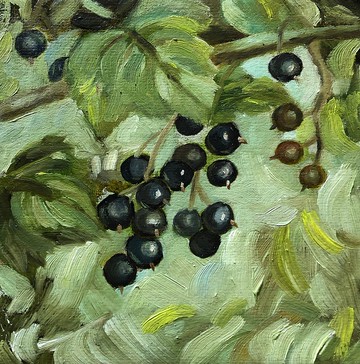 黑醋栗原作油畫。尺寸 15x15 厘米。準備裝船。