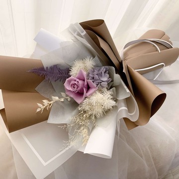 永生花花束--奇妙組合咖啡色與紫色 從未想過的組合繃出秋冬感的奇妙新滋味別活在別人的眼睛與框架裡心不受束縛 活出自在人生奇妙組合代表著自在人生* 尺寸:大的40cm*25cm、中的35cm*20cm,手工製作,難免落差。* 材料:日本進口永生玫瑰(大的2朵、中的1朵)、繡球花、卡斯比亞、蓬萊松、樺木葉、芒萁。花材有缺時會替換相似花材。永生花材難免有小破損、斑點。* 花束體積大,一筆訂單只能裝1束,超過請分開下訂。* 如需收據,請於訂單備註說明抬頭、運費是否納入。售出後不提供。* 備貨日為2天,寄出後,無法控制後續物流配送時間,請自行斟酌。* 附贈提袋、保存說明卡、萬用小卡。萬用小卡若要換為我愛你小卡、生日小卡、母親節小卡、畢業小卡、感謝小卡,請於訂單備註。* 花束內可以免費加入迷你學士帽,如有需要,請於訂單備註。