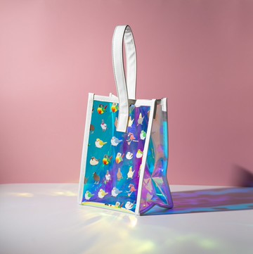 鐳射小袋的大小可以裝飲料及錢包,很適合中午出去吃飯時帶著使用!