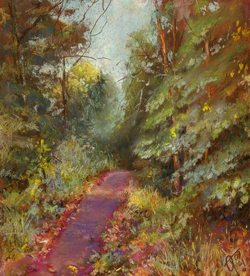 《森林景觀》,2021乾粉彩手工繪畫(不是印刷品!),在彩色紙板上,無框。尺寸:30x30 厘米(12x12 英寸)。將採用保護包裝運輸。建議使用玻璃和路透框架。