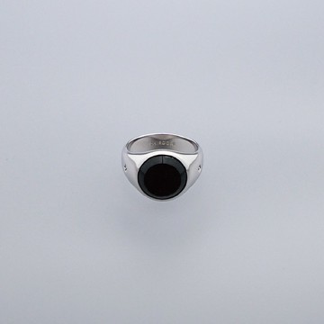 萬寶龍MONTBLANC 壓印LOGO黑寶石鑲飾寬版戒指(銀)