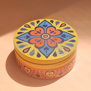 手工彩繪雕花圓形木盒/HENNA/曼陀羅/民族風