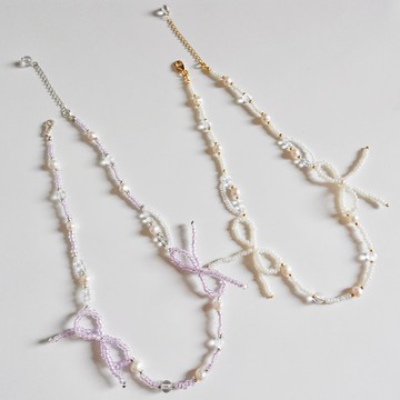 Lily Valley 日系感雙蝴蝶結 | 手工串珠項鍊