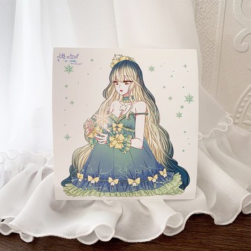 午夜的森林。花系少女手繪卡片 - 茉莉