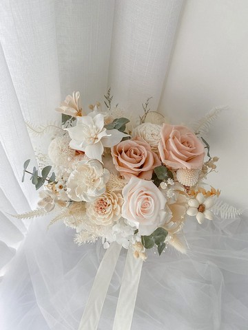 永生花 / 奶白色 永生乾燥捧花 / 新娘捧花