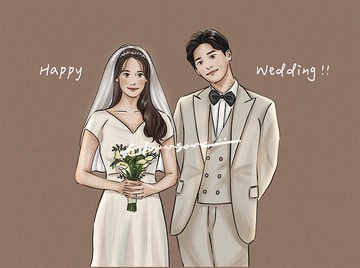 【客製化婚紗似顏繪】韓系婚紗 (線條刪減版) 電子檔