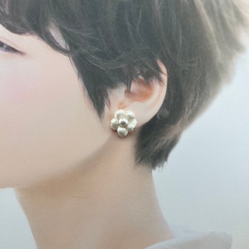 Fina 精美珍珠小白花貼耳耳環