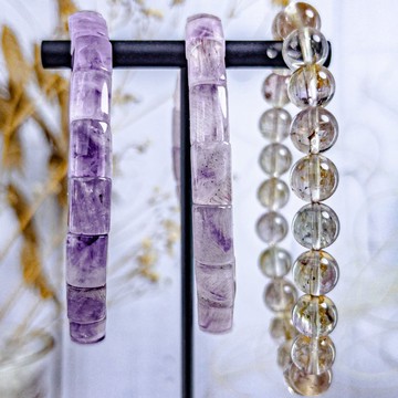 📐 尺寸 📏A 夢幻紫羅蘭 6.9x5.7mm/圍17.6cmB 浪漫薰衣草 6.8x5.4mm/圍17.3cmC 煙霞曦韻 8.5mm/圍16.8cm(可免費改小,或金屬隔珠增長)🌈 愛上每一個光影: 雖然闆闆繁忙,但所有照片都是賣場的真實畫面,沒有隨意的照片📷。對不起,無法為您再另行拍照,希望您理解🔽🔽🔽🔽🔽🔽🔽🔽🔽🔽🔽🔽「點擊下方連結,YouTube 應用程式內設定(影片設定選擇-較高畫素) ,即可於1080-HDR畫質下觀賞商品細節唷!!!」⬇️⬇️⬇️⬇️⬇️⬇️⬇️⬇️⬇️⬇️⬇️🔽[1080-HDR高畫質] 粉紫超七手排 / 淡紫黃晶 #超七手串 #紫黃晶手串 #水晶手串 #水晶手鍊/一物一拍https://youtu.be/a1SYqylvAy4🔮| 水晶介紹紫超七又叫三輪紫骨幹水晶、超七等,夢幻般紫色的晶體中,包含著或黑或紅的髮絲狀包裹體,對應人體的不同「脈輪」,因而被稱為「三輪紫骨幹」水晶。有別於我們在市面比較常見的超七就是同一個水晶礦料里,包含紅黑灰銀白等各色共七種包裹物,融合了白水晶、煙水晶、紫水晶、金紅石、針鐵礦、纖鐵礦和黃磷礦七種礦石。紫黃晶又名雙色水晶,因為寶石上同時呈現紫、黃兩個顏色所以取名雙色水晶,連英文名稱Ametrine也是結合了紫水晶Amethyst 及黃水晶Citrine而成。紫水晶被天然地熱長時間的高溫加熱慢慢褪色變成黃水晶,但在轉變過程中,高溫突然停止,此時,水晶也停止轉變,不再是紫水晶也沒變成黃水晶,而是成為介於兩者之間的紫黃晶,所以紫黃晶兼具紫水晶和黃水晶的特質。