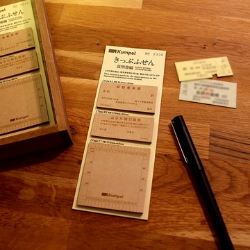 此為三款貼紙組合,以在日本日常生活中常見的「轉乘車票」、「失物招領券」、「延誤證明」為設計靈感。請自由運用空白處,創造專屬的個人用法。 貼紙所在的襯紙,採用與復古車票相同的紙質與印刷方式(活版印刷)製作。襯紙右上方印有獨一無二的專屬流水號。〈規格〉襯紙:66×180mm貼紙:牛皮紙 / 各20張 / A款:30×57.5mm、B款:25×57.5mm、C款:60×57.5mm