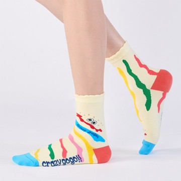 聯名Crazygogo_夢幻波道 中筒襪 - 白(F)