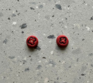 軟陶飾品-雕刻感圓形紅色罌粟花耳環-可製成耳針或耳夾