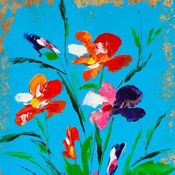 在 stret 上用壓克力畫在畫布上的花朵 Orang Irises