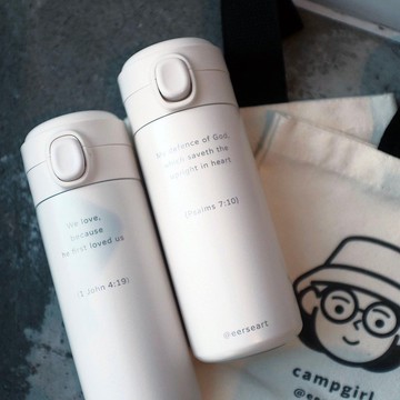 【客製化禮物】【台灣24小時快速出貨】客製化 經文保溫杯 附贈手提小包【We love, because he first loved us 】 1 John 4:19【My defence of God, which saveth the upright in heart 】Psalms 7:10【The LORD hath heard my supplication; the LORD will receive my prayer 】Psalms 6:9【買就送一個品牌手提小袋,就是這麼讚】【保溫杯明細】[尺寸 : 寬6.5 cm 高18 cm][顏色:米白][容量:350ml][材質:304高級不鏽鋼][保溫時間:10-12小時 (會因應環境跟水溫而不[同)[淨重:300g][按鈕:一鍵打開,單手操作,還有貼心的鎖定設計,不用擔心放包包會打開開關唷][杯身:表面是用霧面材質,非常有質感]【使用及保養方式】【杯蓋組可拆卸】【拆卸清潔更徹底 每一處細節都能清除污垢】https://live.staticflickr.com/65535/52757978827_7d8c450d4b_o.jpghttps://live.staticflickr.com/65535/53230612328_b21dd8c977_b.jpg【設計師及品牌簡介】[一個人來台灣環島後 愛上這個地方][分享作品之餘,也開始將插畫變成自己的職業將喜愛的插畫融入在生活中]【產地/製造方式】[Design: Taiwan]