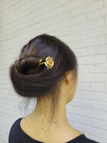 【手作玫瑰髮簪】※ 材質 : 黃銅※ 尺吋 : 花朵約10圓硬幣大小。 髮簪總長度約16公分, 簪體沒入 頭髮的部份約12~13公分。【 貼心小叮嚀 】 髮簪本身為黃銅色,而金屬在自然狀態下佩戴久了,顏色會因為氧化而較暗。建議髮簪不配戴時盡量放在盒子或夾鏈袋中收藏。當然設計師們也喜歡髮簪氧化後顏色比較深的感覺,有一種老飾品的意境。但是如果您喜歡髮簪顏色較為明亮。那建議可以先用800的細砂紙去拋光它,再用金屬亮潔劑去擦拭。※ 或是可以寄回來,幫您免費做保養服務喔~※ 手工製作,敲敲打打,耗時耗力,需要較長的工時,下單後還請耐心等候。※ 每件作品都是設計師親手打造,無法像工廠生產的一般標準化。因此每一件都會有手工製作的痕跡或色差,如果有疑慮的話請先來信與設計師溝通後確認再下單。【免費的保養服務】飾品在自然配戴的條件下,如有故障或因配戴久了而產生的顏色氧化現象,我們工作室可以提供免費的保養維修服務。※ 如因外力(例如重力碾壓)而導致的毁損則需視毀損程度酌收費用。※ 如需維修可先拍照傳給設計師看,經過討論後如果可以維修再寄給我們。