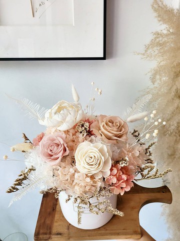 海藏設計│悠閒輕時光。奶茶粉永生花盆花 乾燥盆花