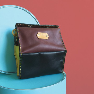 六邊形玩味配色皮革單肩包
