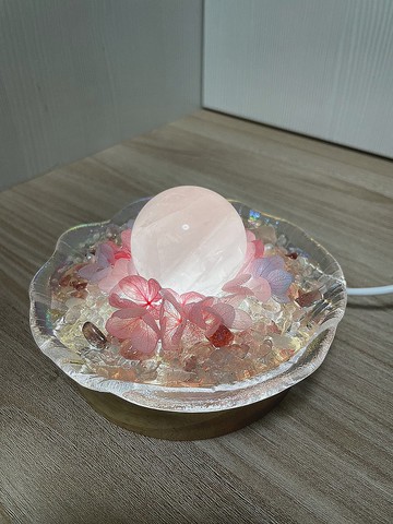 |品牌價值|每種天然的水晶都自成一格,就像每個人都有不同的特色及生命軌跡,我們不需要跟別人一樣,但都要學會愛自己的能力,喜歡心理學的闆娘希望能用一件簡單又美好的生活小物來傳達無形卻重要的信念,在人生遇到挫折或迷惘時能夠莫忘初衷。而人一天當中大約有三分之一的時間在睡覺,想想睡前卸下了一整天的疲倦跟自己說聲辛苦了,並在床邊點上一盞美麗又不斷的散發正能量的水晶夜燈(小明燈),是不是充滿儀式感,人因夢想而偉大,它將陪伴我們度過每一個美好又舒心的夜晚,並持續為我們增加信心來迎接新一天的到來及挑戰。|作品介紹|本作品主要以鄰近我們的海洋及珍珠貝殼元素來進行創作,看到它彷彿就可以感受到浪漫粉紅的喜悅感,作品特別以協調的乾燥花朵色系穿插在天然粉水晶球周圍,讓它華麗變身為一盞賞心悅目又十足生活感的能量場(小明燈)。而作品中使用的粉水晶球,經常也被拿來作為招好人緣好桃花的相關擺件,本作品以新舊融合的創作概念將美麗動人的花兒與神秘的治癒水晶能量異材質結合了,您是不是也從沒遇到這麼漂亮又那麼高調浮誇系的消磁盤呢。「因為市面上真的找不到,所以我們就決定自己設計啦」,它不只可以擺放戒指飾品等,最重要的是還可以拿來當小夜燈喔,不管是擺在房間客廳或辦公室絕對都是吸睛度一百分的擺件。您在購買本作品時將包含一組專用的「USB木頭底座」及一只本所精心挑選設計小清新感的「精緻提袋」,讓您送禮自用兩相宜。最後要提醒因為每朵乾燥花及每顆粉水晶球都是「天然形成」,所以形狀紋路都會不一樣不一樣不一樣哦(很重要所以說三次),每件作品都將以同一創作概念(調性)下去設計,成品輪廓跟照片不會完全相同,建議可以接受再下單哦(本所於下單後開始製作前會先以平台訊息工具搭配照片等進行溝通,再次確認後才會開始製作,提醒每盞專屬純手工客製的小明燈皆為本所用熱誠用心力時間去精心製作,確認開始製作後將無法提供退貨服務)。若您也能接受每一盞都是「世界上絕無僅有」的小明燈來跟您結緣,就帶它回家吧。丨作品尺寸丨長寬約13公分。