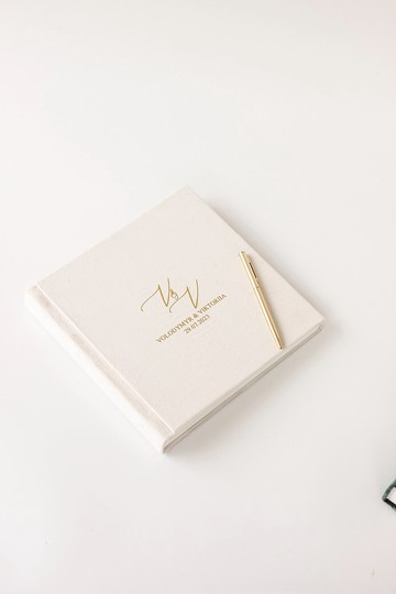 白色簽名冊,可作筆記與黏貼照片,訂製 23x23 公分相簿