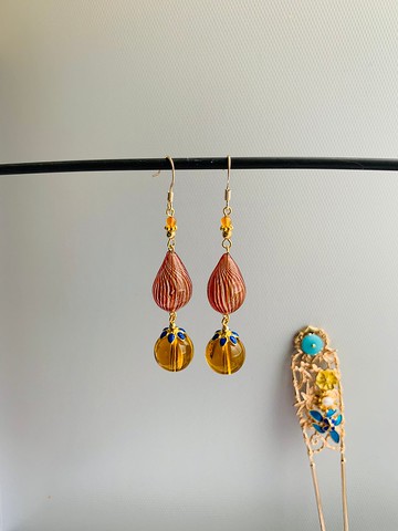 https://live.staticflickr.com/65535/51221942126_0560907b52_b.jpg✧ 橘瑪瑙、橘色水滴中亞螺紋琉璃、烤藍花帽、優化黃水晶、14K包金耳勾✧ 主體都是口吹琉璃(玻璃),每一個琉璃(玻璃)都有螺紋色帶,但因為手工,很難做到完全一樣,色帶間隙有寬有窄,其中也有大小不一的氣泡在內。✧ 摔,一定會破,即使是鑽石摔到也是會損傷,請細心呵護獨一無二的作品。https://live.staticflickr.com/65535/51222181133_7c5d035a8a_b.jpg可以**免費**更改為夾式耳環或其他材質耳針__(請於訂單中備註要更換哪一種夾式針式,否則以原創配置出貨,收到貨後變動需自行負擔來回運費及工本費,謝謝。)__|耳夾耳針款式說明|► **螺旋式耳夾**(金銀兩色,最多人使用,可以自由調整鬆緊度。)► **彈簧圈式耳夾**(金銀兩色,大部分的人戴久會痛。)► **三角耳夾**(金銀兩色,傳統三角形耳拍式耳夾,適合耳垂較小的配戴,輔助矽膠墊片可自由取下。)► **矽膠耳夾**(透明色,前方珠體有金銀兩色選擇,矽膠容易老化斷裂損壞,極度不建議使用。)► **925銀耳勾**(銀色,國際標準925銀製品。)► **925銀鎏金耳勾**(金色,國際標準925銀人工電鍍金製品。)► **不銹鋼耳勾**(銀色,飾品用不銹鋼製品。)► **不銹鋼耳針**(銀色,飾品用不銹鋼製品。)► **14K包金耳針**(金色,美國14KGF製品。)► **14K包金耳勾**(金色,美國14KGF製品。)► **銅鍍金抗敏耳勾**(金色,黃銅底胎電鍍無鎳金製品。)https://live.staticflickr.com/65535/51222896680_aa5c410c20_b.jpg► 商品皆附品牌專用紙盒(大小隨商品本身變動)、萬福金安保養說明卡、塑膠收納夾鏈袋(一個商品會有一個)。► 若商品要特別一樣一樣分開紙盒包裝 or 需要紙製小提袋(1~2樣商品會免費附一個),請於訂單上註明,若無註明小提袋不會附贈喔!► 想響應環保輕便包裝,可留言加註__“簡易包裝“__,我們會捨去紙盒以塑膠夾鏈袋裝好。https://live.staticflickr.com/65535/51223075670_a5bb9b6302_b.jpghttps://live.staticflickr.com/65535/51222035023_ccc48a96b6_b.jpg► 請留意泡澡、泡溫泉、游泳及淋浴都不可佩戴。► 包K與鍍金材質可以使用乾淨的棉布擦拭。► 925銀材質可以使用乾淨的棉布或拭銀布輕輕擦拭,**請勿使用洗銀水或拭銀乳清洗擦拭珠寶飾品**。► 請避免將化學物質直接與珠寶飾品接觸,像是噴香水後再配戴會比較合適,妥善保養可以讓珠寶飾品有更長的使用期限。► 平日不配戴時,可以用柔軟乾淨的棉布輕輕擦拭,盡量保持乾燥,收在密封夾鏈袋裡減少空氣接觸,減緩變色、生斑的速度。https://live.staticflickr.com/65535/51219157977_2afa1ae8d2_b.jpg► 照片呈現皆以實物拍攝,會因角度關係、光線關係、個人電腦螢幕亮度會略有誤差。► 天然寶石都有自身紋路、冰裂紋、礦缺、結晶、色澤或色差等,屬為正常現象,介意者請慎重考慮清楚,接受再下單購買哦!► 嚴選堅固耐用彈性線,正常使用可維持一年以上才會變鬆,除非外力拉扯容易斷線,請放心配戴。► 些微金屬焊接點差異,鍍色表面細微刮痕或小凹凸點屬正常現象。► 金屬仿舊處理為特殊效果,因此會有較多的紋路與色差,屬為正常現象。► 國際標準925銀耳勾耳針因材質較為細軟,故有些許彎曲為正常現象。► 耳環因衛生問題售出皆不做退、換,若購入後需做換針或換夾,需自行負擔來回運費與工本費。► 下單購買前有任何疑問都歡迎詢問。(可於本賣場私訊詢問。或是參考以下"聯絡資訊"詢問。)▲ 聯絡資訊 ▲[ Facebook ]D調風采 DGrace[ Instagram ]daleleetw[ 官方 LINE ]@yrp7789f (須加上@)https://live.staticflickr.com/65535/51221235582_58fe2c6bdb_b.jpg