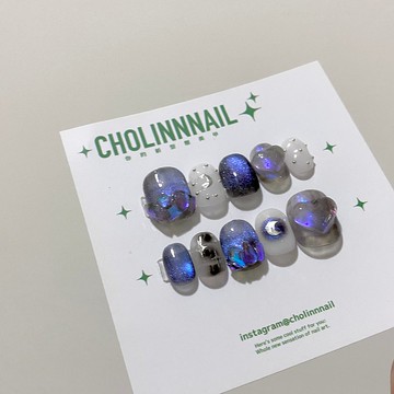 【YL.NAIL灰姑娘的淚】純手工甲片小紅書ins極光貓眼水波紋穿戴甲