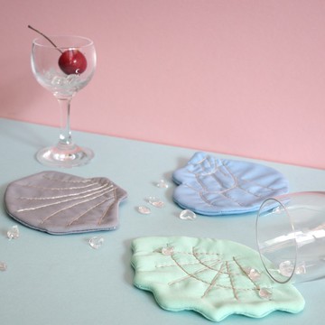 ★**沁涼舒心!閃閃發光的夏日海洋風**★前一款可愛的觀葉杯墊好受歡迎,為了迎接閃閃發光的夏日,我們來做幾個微光閃閃的貝殼杯墊吧!放在桌前,隨著光線閃閃發亮,看了舒心又沁涼。https://live.staticflickr.com/65535/52831380489_afe4c6feaa_b.jpg-**專為新手設計!跟著說明書和影片零經驗也不怕**這款材料包附上了專為縫紉新手印製的記號布,你不再需要自己描版型到布上,也不需要擔心自己是不是縫歪了、形狀跑掉了,只要跟著布上的記號——『沿著虛線縫起來、再從實線剪下』就ok!https://live.staticflickr.com/65535/52831866808_03a3e45625_b.jpg**貝殼紋路採用刺繡技法,教你小訣竅,兩面都好看,兩面皆可用!**https://live.staticflickr.com/65535/52830851892_4b275b64e1_b.jpghttps://live.staticflickr.com/65535/52831198566_b4c3c30cc1_b.jpg-**三款貝殼都超可愛,閃著微光的銀線穿插其中,剛剛好的搶眼**https://live.staticflickr.com/65535/52831200476_149e908b93_b.jpghttps://live.staticflickr.com/65535/52830632217_d93ec1d8e0_b.jpghttps://live.staticflickr.com/65535/52831603850_6c98fab661_b.jpg-**完成尺寸**每個貝殼約13×13公分**內容物**說明書、記號布、棉襯、針、手縫線、繡線*請注意!此作品製作過程中有一個『畫貝殼紋路』的步驟,會使用到熱消筆,如果手邊沒有熱消筆(或任何可以做暫時記號的工具)請記得在訂購時選擇加購熱消筆的選項喔!https://live.staticflickr.com/65535/52746533964_759fc33a1e_b.jpgPS 微微的細閃光肉眼看很明顯,不過照片很難拍出來,我們特地上傳了一個關燈影片,讓大家看看貝殼們低調又閃閃的模樣!https://youtu.be/cYeh2k9V3oo