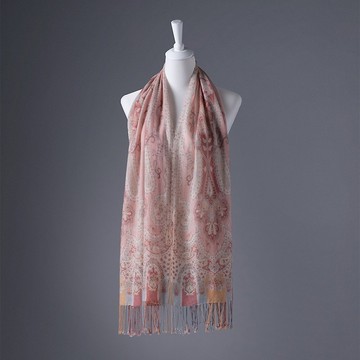 【輕奢】Lisa 波西米亞圖紋印花純羊絨Cashmere流蘇圍巾