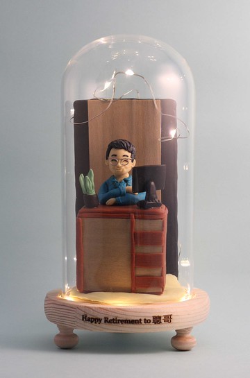 榮休記念小禮品,內有LED燈效,可客製名字.提供相片客製人物造型