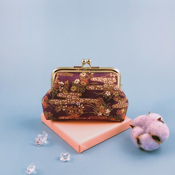 【和夢兔】京都宇治大型口金包-現代花(棕)
