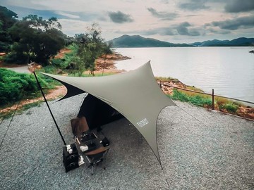 OUTDOORONE 星映速搭客廳帳 一按就開,戶外彈開式中型炊事帳(不含4面圍布)輕鬆撐起你的戶外小天地 三段式高度加大空間設計