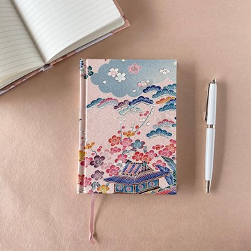 封面採用日本和服中最高級的「加賀友禪」和服布料。其特色在於優雅的圖案與細膩的色彩。這是一款小巧、方便攜帶的筆記本。**材質**[封面] 硬紙板 (作為芯的厚紙板)、和服布料 (絹質・粉紅色)[內頁]白色、5mm方格線 裝訂**160頁**採用線裝筆記本。[內封頁] 高級紙 (深藍色)[書籤] 聚酯纖維 (粉紅色)**尺寸** 縱 152 mm × 橫 110 mm × 厚 13 mm**禮品包裝**若您需要禮品包裝,請由此頁面↓訂購禮品包裝服務。https://jp.pinkoi.com/product/h2xgBS6L◆由於是手工製作,作品可能會有輕微的歪斜或小刮痕。敬請見諒。