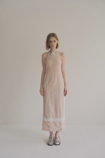 floral lace open back dress 蕾絲挖背洋裝 soft peach 粉杏桃