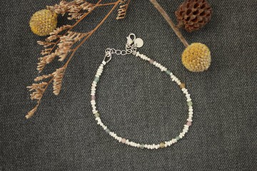 【極細純銀手鍊-天然淡水珍珠/碧璽】天然淡水珍珠細緻可愛搭配五彩透亮的碧璽⚠️注意⚠️ 天然石有自然些微裂痕或微瑕屬正常現象商品名稱:極細純銀手鍊-天然淡水珍珠/碧璽 設計師手作產品材質:925銀/天然淡水珍珠/碧璽產品規格:手鍊粗細約2-3mm產品包材:附贈拭銀布銀飾保養:純銀飾品氧化為正常現象,平時沒有配戴需放入夾鏈袋與空氣阻絕,減緩氧化,可使用拭銀布做乾擦保養,或是使用牙膏與軟毛牙刷清潔細節處,並避免接觸到溫泉♨️、香水等。配戴說明:延長鏈設計,適合手圍13-17公分內配戴,極細手鍊切勿用力拉扯,建議洗澡睡覺時可暫時拔掉比較不易拉扯。純銀部分可用拭銀布乾擦保養,天然石可用些許洗碗精清潔水洗。產地/設計 臺灣