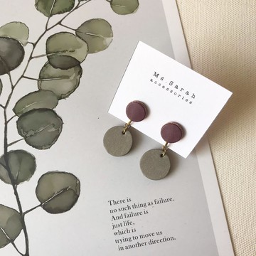 皮革耳環_小圓3號作品_木苺搭珊灰白
