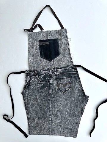 REHOW設計師獨創! 將廢棄牛仔褲拆解後,利用單一褲管拼接而成的工作圍裙。疊加口袋及設計車線,增加廢棄再製的設計感。購買前請參考尺寸:長:78CM / 寬:38CM 開放式脖子掛帶長度:73CM腰間綁帶單邊:80CM (提醒:人工測量,會有 1-3CM誤差,提供參考)保養注意:請勿長時間浸泡或洗滌,水溫勿高於30度建議手洗,請反面洗滌熨燙,不可於圖案上直接熨燙,不可漂白,或使用強酸強鹼物質沖洗。