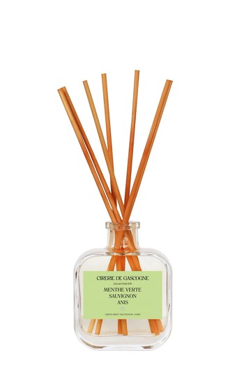 Cirerie de Gascogne四季之彩香氛 – 春x夏Un été en Gascogne : Les jonquilles ont déjà fleuri, l’herbe pousse en libérant ses parfums gras, bientôt le soleil assèchera tout.加斯科涅的夏天水仙花已經開花,綠草也在努力生長,並釋放出濃郁的香氣,暖洋洋的太陽帶走秋冬的寒冽,也讓新生命萌芽香調:薄荷是夏日的加斯科涅(Gascogne)陽台最常見的植物之一,南法的夏天也最適合用加了薄荷的冰茶來解暑了,調香師透過薄荷、蘇維濃及大茴香的結合,呈現出薄荷冰茶的香氣,清新涼爽的味道最能在夏天喚醒因熱氣而食慾不振的味蕾200mL/附有7支藤莖幫助香味擴散天然精油/天然植物酒精正常使用情形約可使用5個月/可重複填充使用法國製另有補充包,若有需求請與我們聯絡☺️出貨皆會使用環保紙類包材或乾淨的二手塑膠類包材🌱🌍
