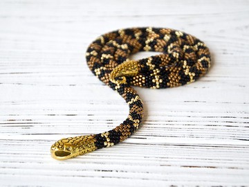黃色串珠蛇項鍊,種子珠項鍊,銜尾蛇,珠鉤針項鍊