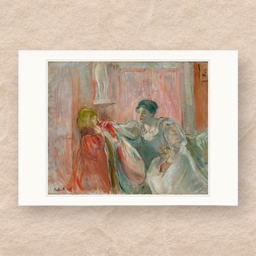 |設計理念將世界經典畫作以現代美學方式重現,運用精緻溫潤質地的藝術紙,不論是裝框或輕鬆吊掛,都是日常生活中的優雅裝飾, 不僅增添了生活中的美感,還可隨時隨地享受藝術生活化的美好體驗。|本創意來源來自 耶魯大學美術館「Young Woman and Child (1894)」|貝爾特・茉莉索 Berthe Morisot(1841–1895)印象派的女畫家先鋒,柔光中的堅毅之筆茉莉索是法國印象派中最具代表性的女性畫家之一,也是最早參與印象派展覽的八位創始成員之一。她以女性視角出發,描繪日常生活、育兒、家庭與室內空間等主題,作品中充滿對光影與情感的細膩觀察。她的畫風柔和而不失力量,筆觸輕盈而富有韻律。代表作如《搖籃》、《夏日》等作品,以淡雅色彩與透明感,呈現女性生活中所蘊含的溫柔與獨立。茉莉索在以男性主導的藝術圈中堅定創作,將女性經驗納入主流藝術史。她的藝術不僅具有美學意義,更是一種文化與性別意識的啟蒙,讓女性在畫布上擁有了自我表達的空間與語言。。|規格說明尺寸:H25.7×W36.4× D0.1 cm包裝材質:OPP袋商品材質:美術紙商品入數:1入產地:臺灣