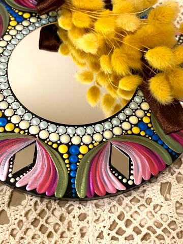 每天早晨或是一個不經意的瞬間,藉由鏡子的反射,提醒自己專注夢想,遇見美好的自己。你知道嗎?吸引你的曼陀羅,上面的花紋、色彩可以反映你內在的狀況或者想傳達給你的訊息喔,如果您購買本產品,可私訊粉專由老師與您回饋。材料:合成木或密集板、壓克力顏料、玻璃與壓克力鏡、樹酯。作品尺寸:20cm*20cm使用說明:1.手作藝術品請輕放,清潔以濕紙巾輕試即可。避免碰撞磨損。2.為保護作品保護層漆與作品,請放置陰涼處,避免高溫、曝曬、潮濕。提醒您:作品皆為手工繪製,完美主義者請繞道,相片顏色可能存在色差,以實物為準。