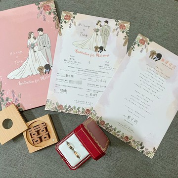 **┃如何訂購┃**1.請下單前聯絡設計師,登記日期或是預計使用日。2.依照設計款式如公版或是全客製化與寵物數量有不同的費用,請先跟設計師討論,再下單。**┃產品訊息┃**【 免費/公版花卉圖案】①超過20種公版花款樣式,設計師會提供給你們選擇有需要參考可以先詢問設計師看款式唷!有喜歡再下單:)【 獨一無二不撞款】 ②另外指定繪製花草圖案(可提供喜歡的捧花造型)或是一個主題的背景設計(設計師會根據背景複雜度判斷加購費用)請先跟設計師討論(根據複雜度以寵物數量計算)設計師也可以給你們看先前設計過的範例參考**┃產品規格┃**①實體:證書夾+書約3張↟書約一律印製為三張[一張備用、一張留念、一張戶政收走]證書夾為進口銅西卡,書夾可攤開內附緞帶固定保存書約 ②虛擬:免費提供電子圖檔書約電子檔案、書夾圖片電子檔案、似顏繪去背電子檔案**┃出圖步驟┃**1.草圖可有3次微調,無法大改。2.草圖沒問題才進行上色處理。3.上色之後可以小範圍調整2次。**┃注意事項┃**▸ 完美主義或是要求要非常非常非常像的下單前請三思唷卡通風格為比較可愛80%可以抓到神韻唷!▸(Yi Qiu Chen/Joyce)設計師有權在社交軟體上發表插畫,(e.g. facebook, pinkoi, instagram..etc)▸ 客製設計無法做退款。▸為了確保有高品質,如果你很緊急,本館不接受急促的下單。