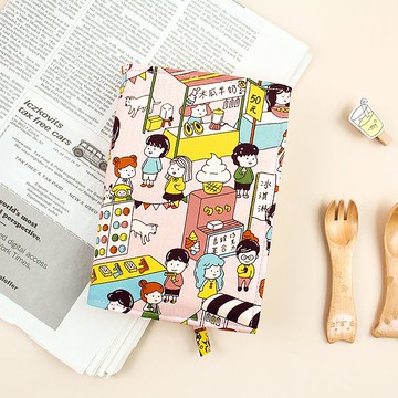 Chuyu A6/50K台灣花布多功能可調式書衣/手帳書套書皮-01逛夜市