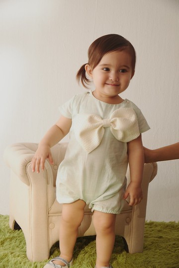 立體版型泡泡褲連身衣舒適好動立體俏皮的蝴蝶結是bbc的經典元素顛覆了傳統的蝴蝶結俐落又有型