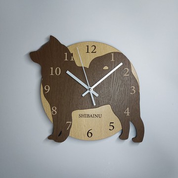 期間下殺3000日圓優惠刻名字刻狗突出掛鐘柴犬棕色靜音鐘錶
