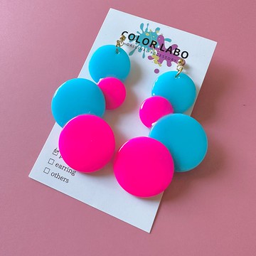 【尺寸】長約7cm【顏色】霓虹粉紅、螢光藍【材質】樹脂(樹脂)【零件材質】手術不鏽鋼[金屬過敏] 通訊[零件更換] 可能的耳針/耳夾請選擇您的喜好。