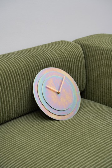 「時間的價值來自於分分積累,時光的回首來自於秒秒珍貴。」時鐘的設計概念源自於透過幾何堆疊的結構,演譯「時間」積累成「時光」的光影轉瞬效果。透過材質的特殊色澤紋理,可隨著觀者不同角度的觀看,反射變幻出不同的視覺效果。將藝術結合哲學,讓生活一隅的時鐘也能展現獨特品味的家居風格,在每分每刻找到純粹的美好。"The value of time comes from collecting minutes, and our understanding of time grows from recognizing the worth of each second.The clock's design captures light and shadow through a stacked geometric shape that symbolizes time. Its special colors and textures create different visual effects depending on the viewer's angle.This clock combines art and philosophy, adding a unique style to your home while highlighting the beauty in every moment.鐘面採用金屬電鍍工藝,呈現細緻勻郁的磨砂觸感,以金黃色金屬質地為基底,伴隨著紅、藍、紫等色調,隨著觀察角度的變化反射不同光澤,為空間增添獨特的裝飾藝術氣息。The clock surface is crafted using metal electroplating technology, resulting in a delicate, frosted touch with a captivating golden metal texture and an array of vivid color tones. It exudes various lusters as the viewing angle changes, injecting a unique and distinctive decorative art into the space.https://youtube.com/shorts/CHpL7dnbQAc?feature=sharehttps://live.staticflickr.com/65535/53849661398_416e70567d_k.jpghttps://live.staticflickr.com/65535/53849761804_ded9063d5b_k.jpghttps://live.staticflickr.com/65535/53849661413_63042afab1_k.jpghttps://live.staticflickr.com/65535/53848512647_f635dec049_k.jpg產品規格材質:金屬、電鍍尺寸:最大外徑24cm,高3.4cm(含指針)(商品尺寸皆為手工測量,可能會有些許誤差)產地:台灣