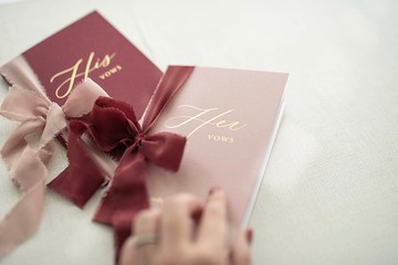 Yes, Ido. 交換珍藏一生的誓言,是婚禮中最浪漫動人的時刻面對彼此訴說重要的承諾、親手寫下一封永恆的情書這一刻,將成為最美好的紀念/**嫣紅公版套組**His Vows:E#27酒紅 + B-104藕粉Her Vows:E#42藕粉 + S-046酒紅 https://live.staticflickr.com/65535/51305709907_d58f525fe0_c.jpg/**內頁樣式**90g 英國環保歐林紙,紙面鬆厚硬挺,微粗糙好書寫※ 水性、中性、油性筆皆可書寫https://live.staticflickr.com/65535/51305844127_f8ae325500_c.jpg**// 同婚版本請於備註欄位提出需求 //**尺寸| 11.5X17cm ( 手工絲帶寬度約2.8cm )封面材質| 300g 英國再生環保紙內頁材質| 90g 英國環保歐林紙加工| 燙霧金 _______________________________________________** // 紙張顏色 // **https://live.staticflickr.com/65535/51307083564_496dbe4d4b_c.jpghttps://live.staticflickr.com/65535/51307372305_0f9984b02e_c.jpg** // 手工絲帶顏色 // **https://live.staticflickr.com/65535/51306362886_939e61f024_c.jpghttps://live.staticflickr.com/65535/51307371245_00a574aea1_c.jpghttps://live.staticflickr.com/65535/51305618812_203b105dc6_c.jpghttps://live.staticflickr.com/65535/51305619052_f4bafddb3c_c.jpghttps://live.staticflickr.com/65535/51307083294_b04a65948a_c.jpghttps://live.staticflickr.com/65535/51307083414_01c17b3c1e_c.jpg** // 客製化資訊燙金 // **https://live.staticflickr.com/65535/52487669152_38a8829c37_c.jpghttps://live.staticflickr.com/65535/53832349101_b9db8db9f4_c.jpg§ **請於備註欄位中提供客製化內容** §§ **校稿完成後才會印製,下單後3日內請隨時注意校稿信件** §※ **字體依範例為主不提供更換**,印刷前會提供校稿_______________________________________________🔸 此商品使用FSC環保紙,紙漿回收再利用時偶有雜質、小斑點或細微刮痕產生🔸 再生紙張有細微壓紋、表面不平整之特性,燙金時會有些許斑駁效果為正常現象🔸 商品成型後燙金,紙面難免有刮痕或機器壓痕🔸 絲帶為呈現自然手撕效果, 輕微線頭和毛邊脫線屬於正常情形🔸 運送時絲帶會有些微凹折痕跡,使用前可以低溫熨燙一下即可恢復原狀喔🔸 以自然採光拍攝呈現,紙張顏色因螢幕顯色不同,可能有些微色差🔸 產品寄出後無法退貨及換款,以上須知皆不得作為瑕疵退貨之理由,請確認後下單🔸 公版商品下單後5日內寄出商品;客製商品下單後3個工作天內提供圖檔校對,確認後7-10個工作天寄出商品,急件請由站內信提前詢問